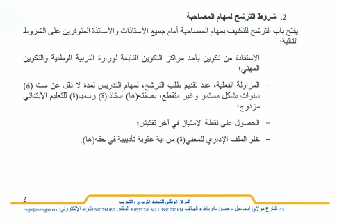 وزارة التربية الوطنية الترشيح لمهام الأستاذ(ة) المصاحب(ة) بالمدارس الابتدائية