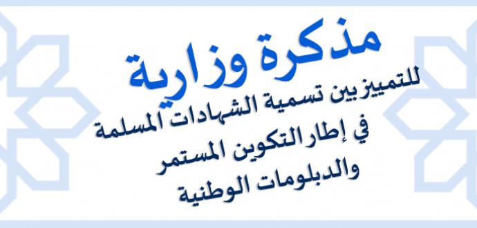 أصدرت وزارة التعليم العالي والبحث العلمي وتكوين الأطر مذكرتين، تهم تسمية الشهادات الخاصة بالجامعة diplômes d’université) ) :المسلمة من طرف المؤسسات الجامعية، وكذا الشهادات الخاصة بالمؤسسات غير التابعة للجامعات المسلمة في إطار التكوين المستمر.
