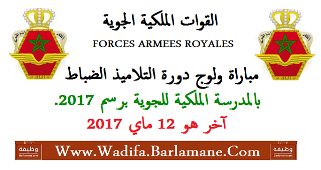 Le concours d’admission au cycle des Élèves Officiers de l’Ecole Royale de l’Air sera organisé au titre de l’année 2017, dans les conditions ci-après: