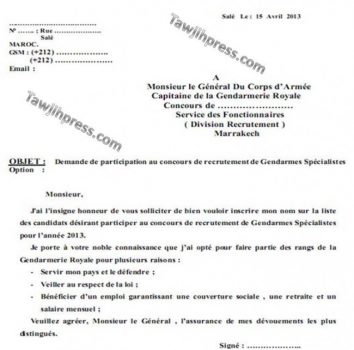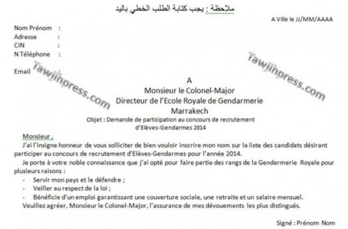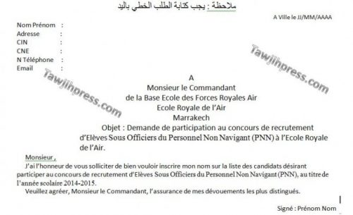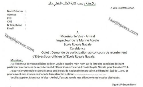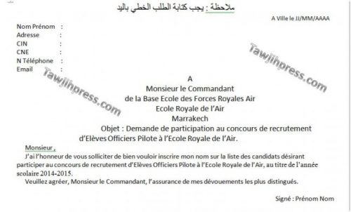 طلب خطي لمباراة الاكاديمية الملكية العسكرية مكناس