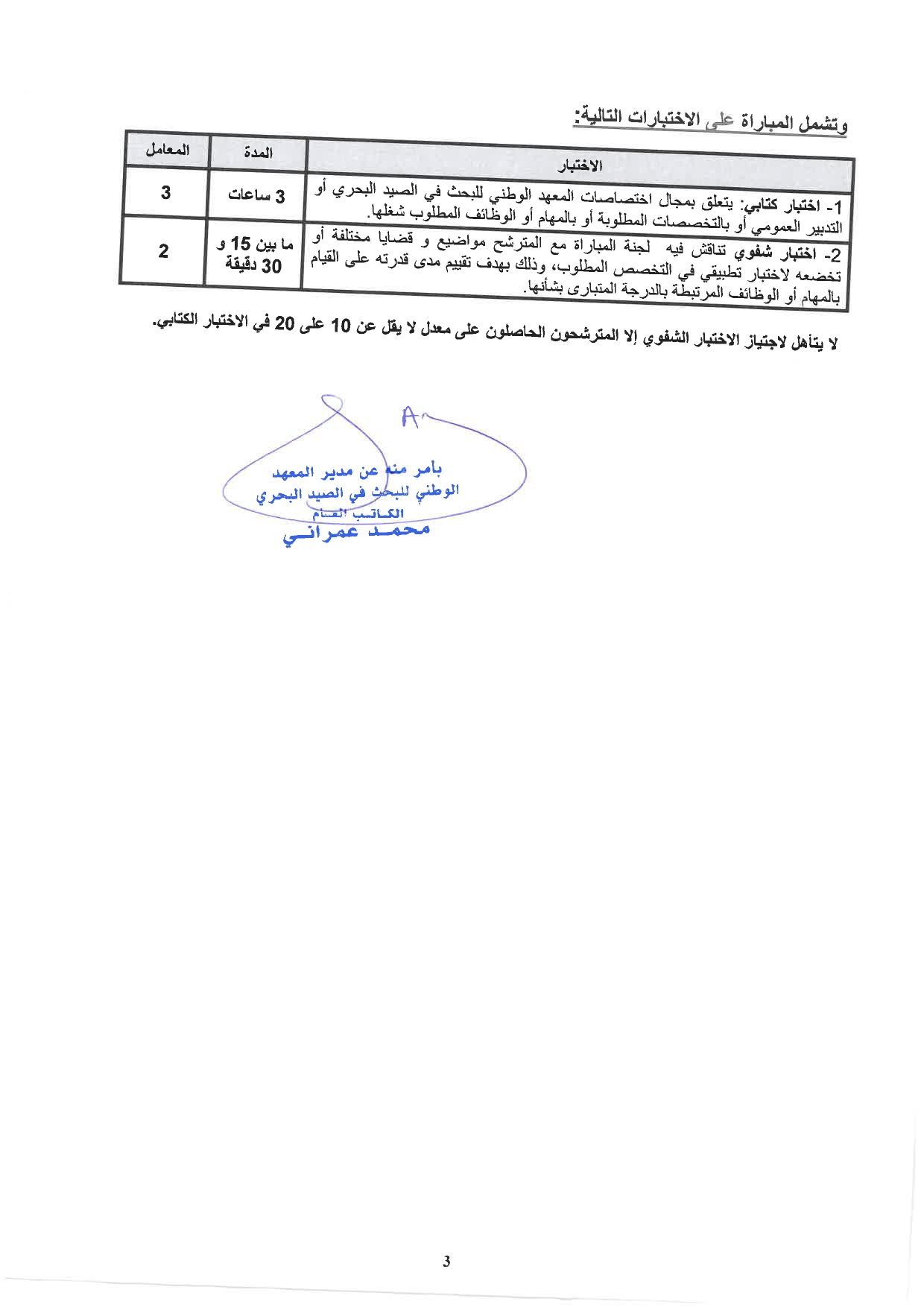 ينظم المعهد الوطني للبحث في الصيد البحري (INRH) مباريات لتوظيف 30 منصباً موزعة على النحو التالي: