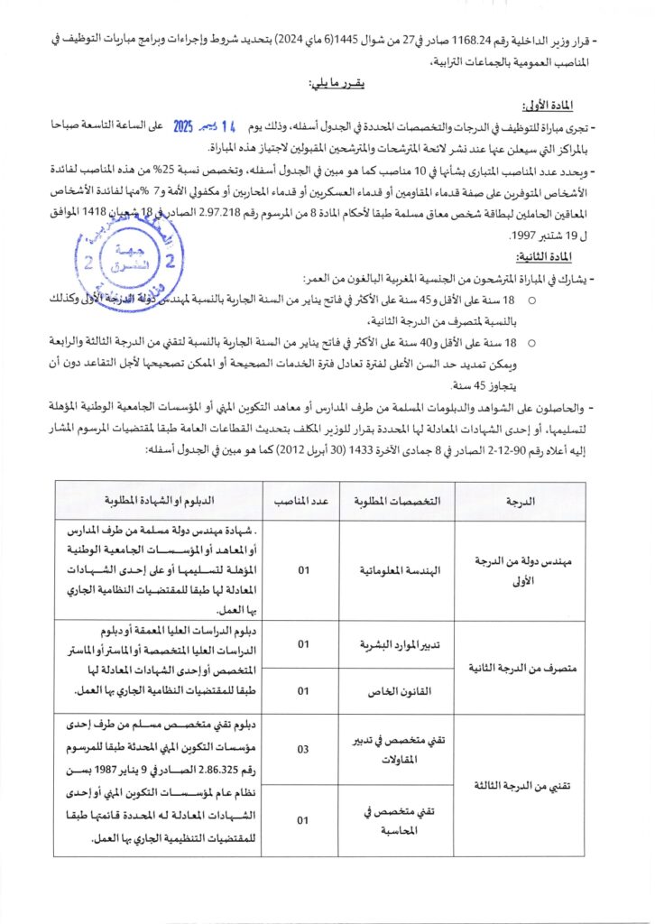 Le concours aura lieu le 14 Septembre 2025