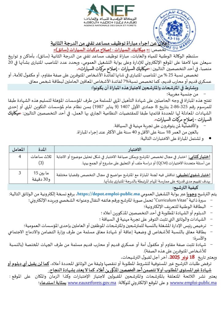 L’Agence Nationales des Forêts ANEF organise un concours au titre de l’année 2025, pour le recrutement de 20 Adjoints techniques 2ème grade.