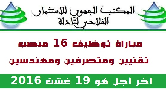 المكتب الجهوي للاستثمار الفلاحي لسوس ماسة: مرشحي مباراة توظيف في 10 مناصب تقنيين ومتصرفين ومهندسين. ليوم 5 أكتوبر 2016