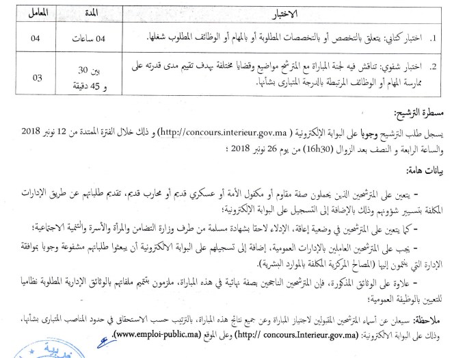 تاريخ إجراء المباراة الكتابية :16 دجنبر 2018